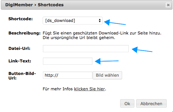 On the thank you page, use the DigiMember Shortcode-Generator to insert the download shortcode. In the generator you enter the URL where your download file is located and a corresponding link text or image.