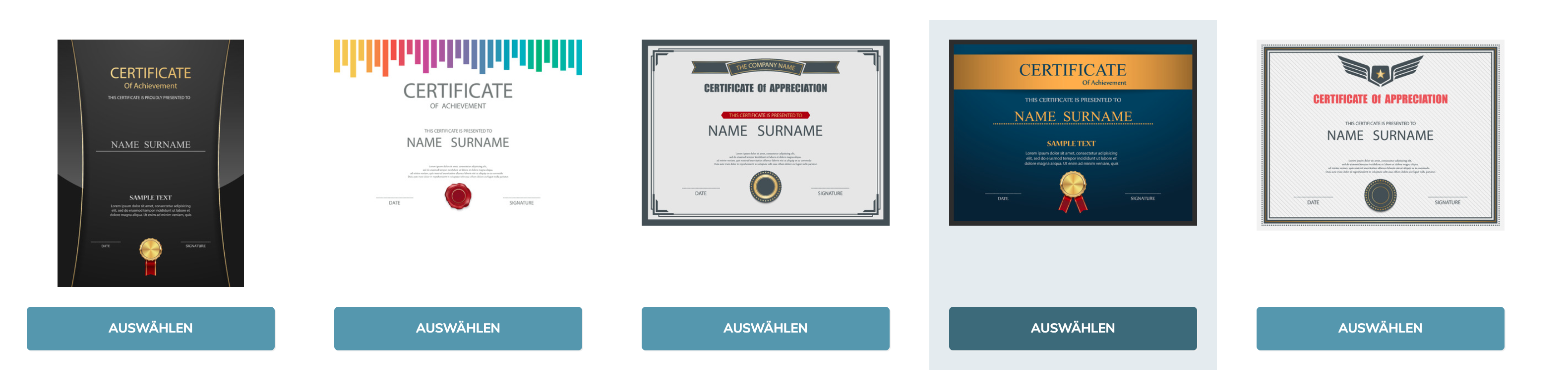 In the next step, you select a template that suits you best from five different certificate templates and click on "select":