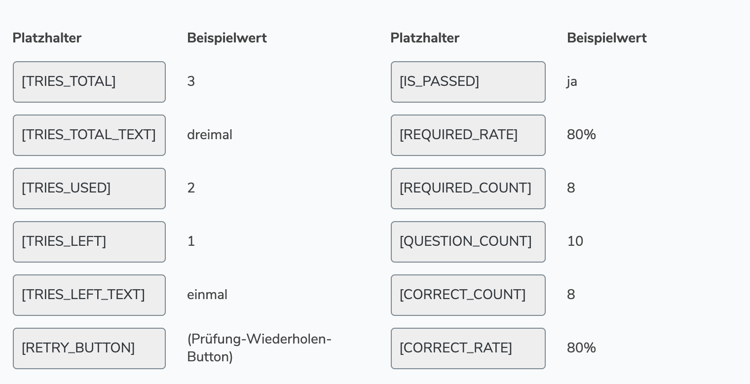 TRIES_TOTAL → shows the total number of attempts the user has to pass a test.