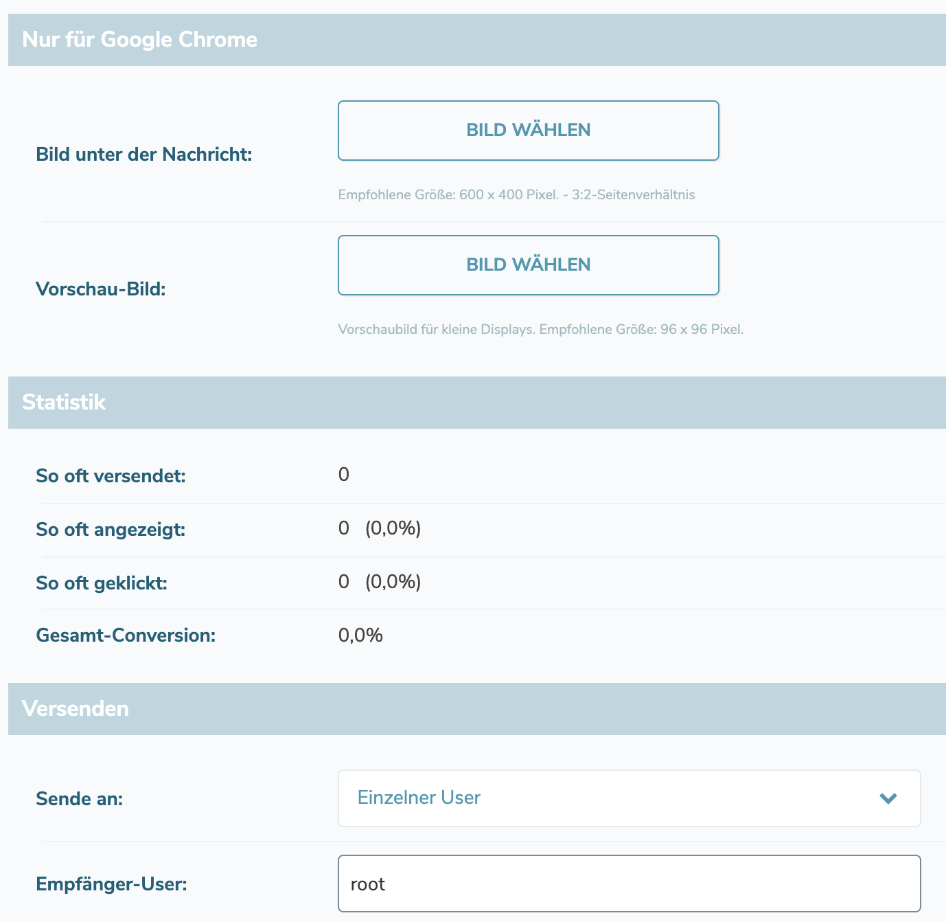You are welcome to send a Test Web-Push message. If you wish, you can reset the send statistics to "0".