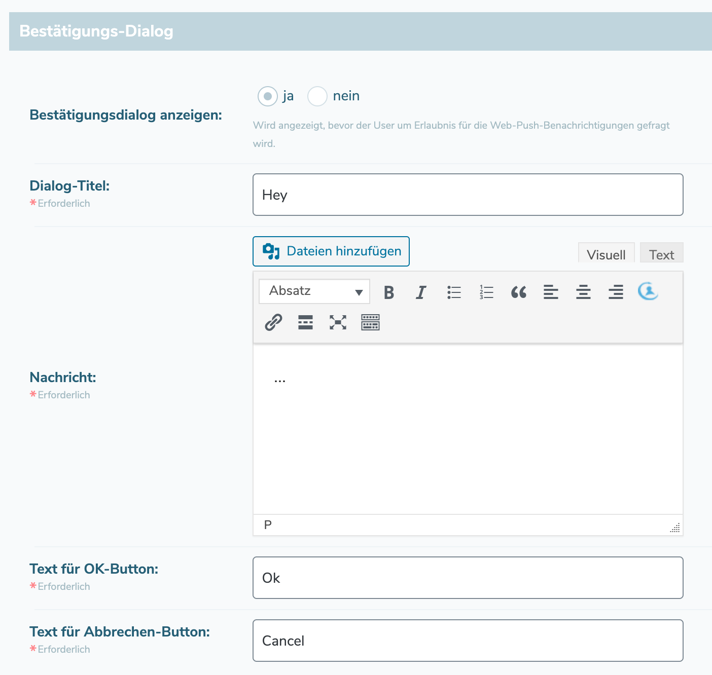 Web-Push message settings